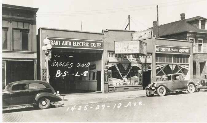 The Piston & Ring building is located on 12th Avenue between East Pike and East Madison Streets, part of Seattle’s original “auto row” neighborhood from the early 1900s. The building’s heavy timber parallel chord truss design allowed for an almost 25-foot ceiling height and no interior columns, ideal for maneuvering and showing off new cars. Over the years, the building was home to a series of auto dealers, auto supply and auto repair shops, including the Piston & Ring company.